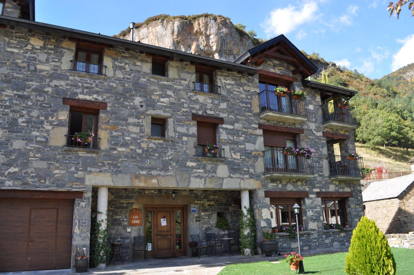 Casa Lordán está situada en una «era» dentro de Torla, orientada hacia el Parque Nacional de Ordesa. Construida en 2010, respeta la arquitectura tradicional de montaña: piedra, madera y amplitud de espacios.